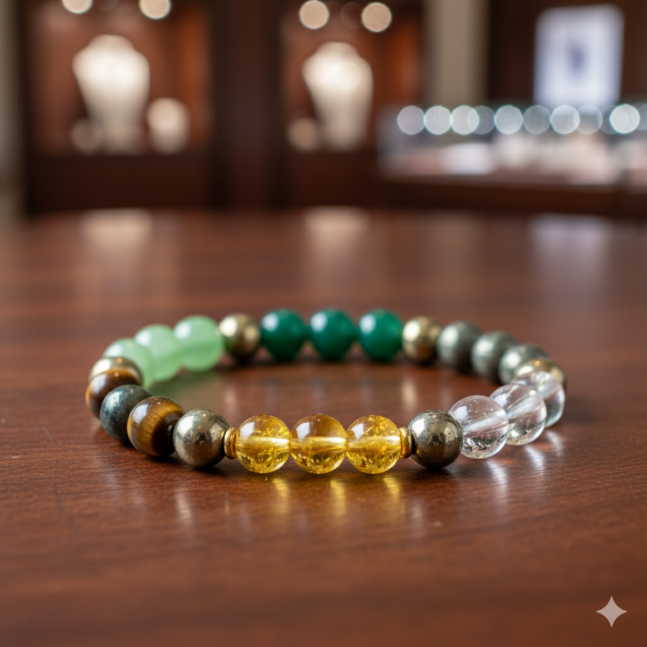 This exquisite, handcrafted beaded bracelet is a powerful tool for attracting abundance and providing energetic protection. It features a harmonious blend of natural, high-quality gemstones, each chosen for its unique metaphysical properties. The bracelet is designed to be worn daily, serving as a constant reminder of your intentions and a beautiful addition to any outfit.