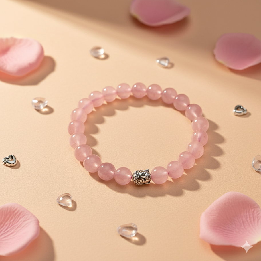 Embrace the gentle energy of love with our Rose Quartz Love Attraction Bracelet. Known as the stone of unconditional love, rose quartz helps open the heart to compassion, harmony, and meaningful connections. Its soothing pink tones promote self-love, emotional healing, and the attraction of positive relationships.